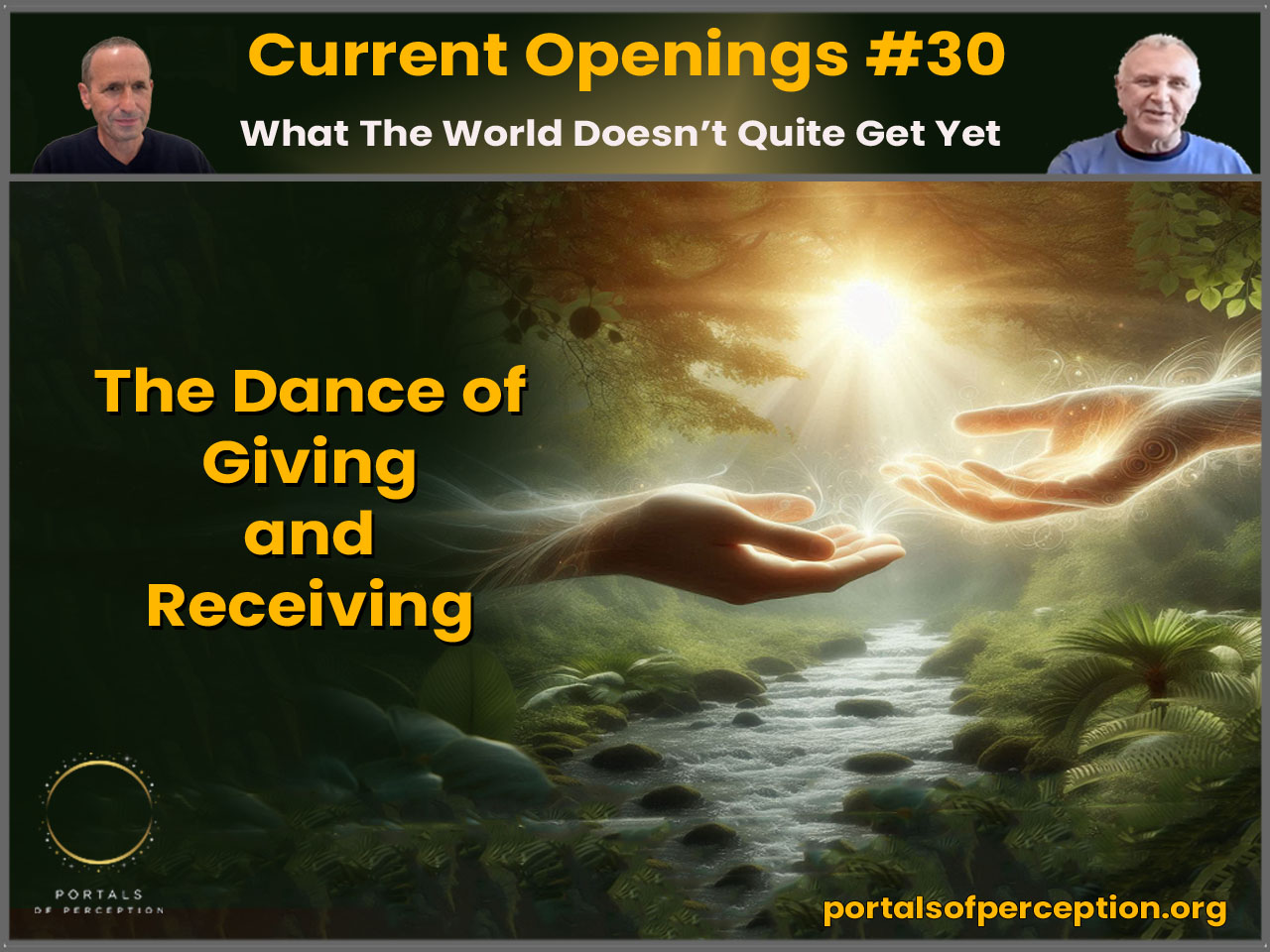 The Portals of Perception site is for me an open window through which communications between people and signals from the future find a home. The conversations are thought provoking and there is the sense that the voices of Portals are dedicated people, open, sensitive and trained to decode the new currents of information flowing in. It is great and hopeful that such a beacon exists in the world.